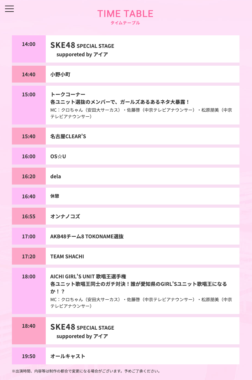 「AICHI GIRL'S EXPO 2019」タイムテーブルが発表!