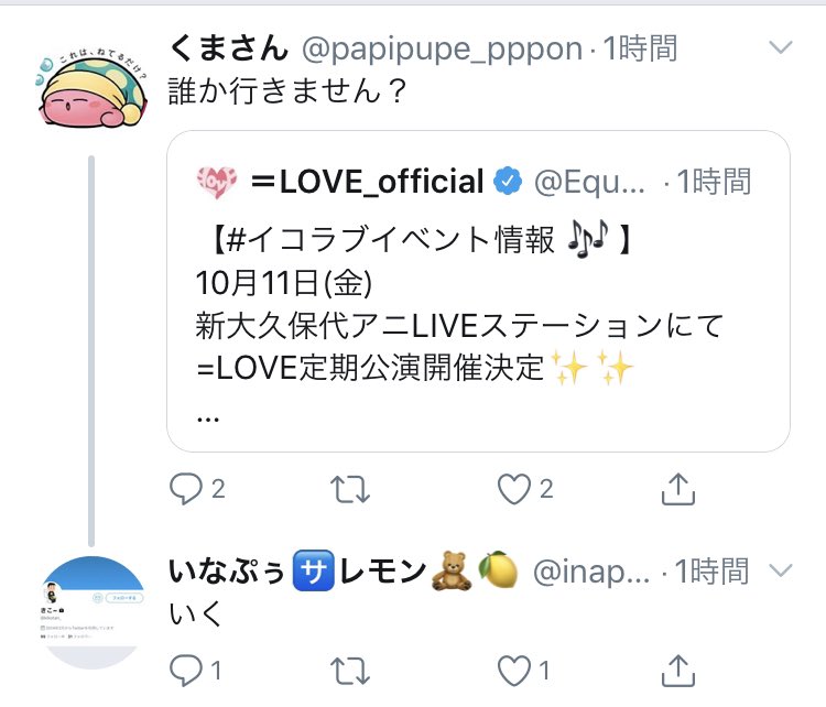 いなぷぅ、10月11日のイコラブ定期公演に参加か