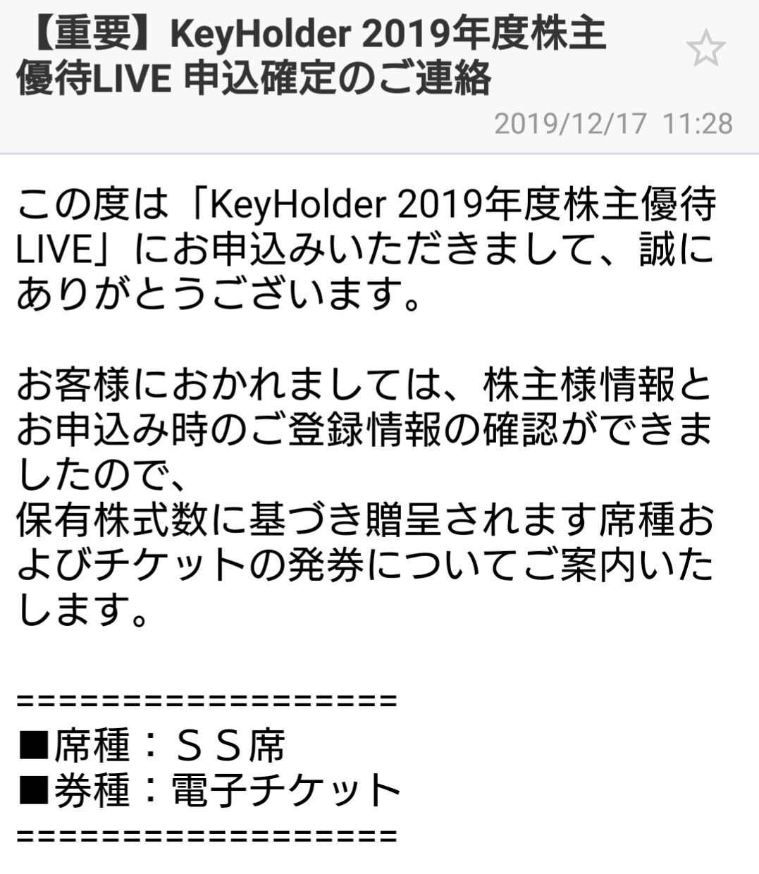 『KeyHolder 2019年株主LIVE』の確定メールキタ━━━━━━(゚∀゚)━━━━━━ !!!!!