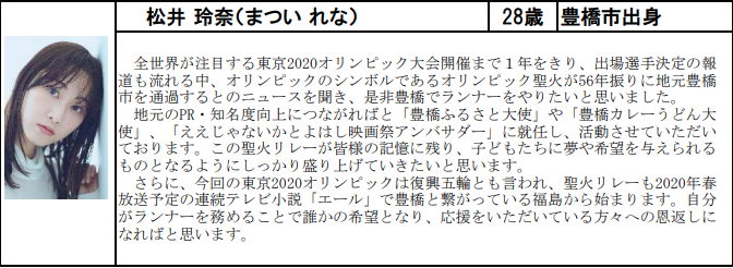 松井玲奈、東京2020オリンピック聖火リレー 愛知県聖火ランナーに決定