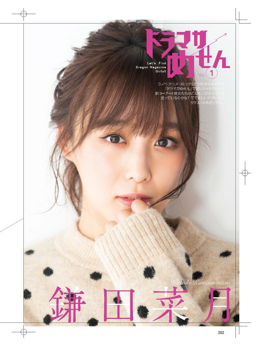 #ドラゴンマガジン 次号スタートの新コーナー「ドラマガめせん」。ラノベやアニメなど二次元好き女子を紹介します。第一回目はまもなく新曲「ソーユートコあるよね?」を発売する #SKE48 の #鎌田菜月 ちゃんが登場。インタビューとグラビアをお届けします!