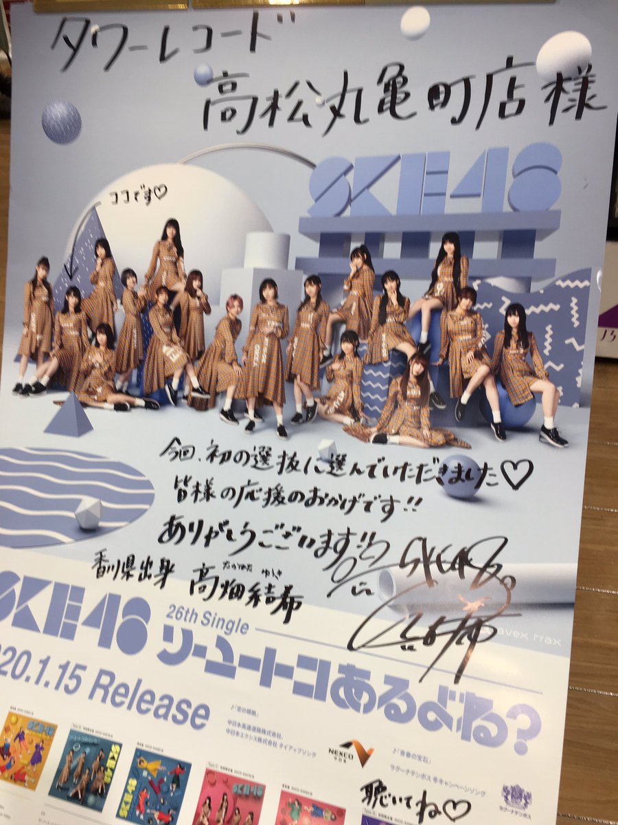 SKE48髙畑結希、タワーレコード高松丸亀町店に直筆サイン入りポスターを送る!!!