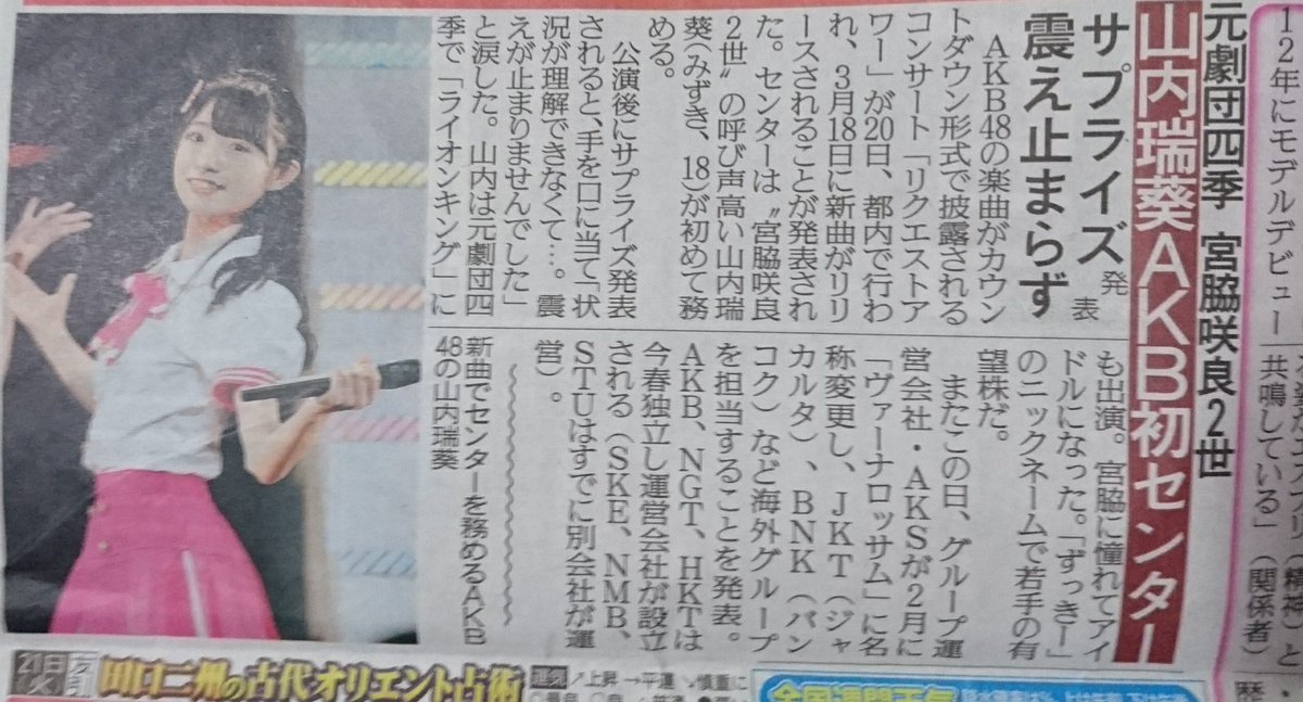AKB新センター山内瑞葵さん「宮脇咲良2世」と紹介される
