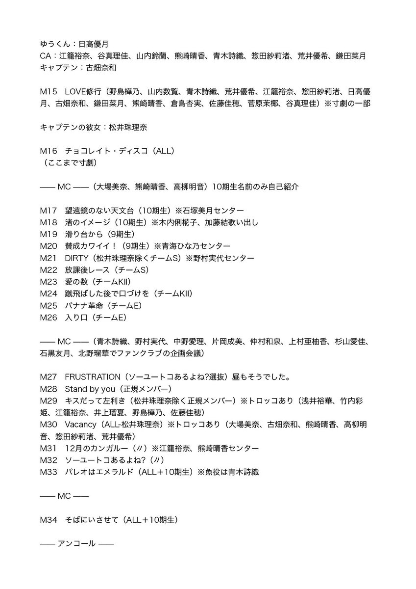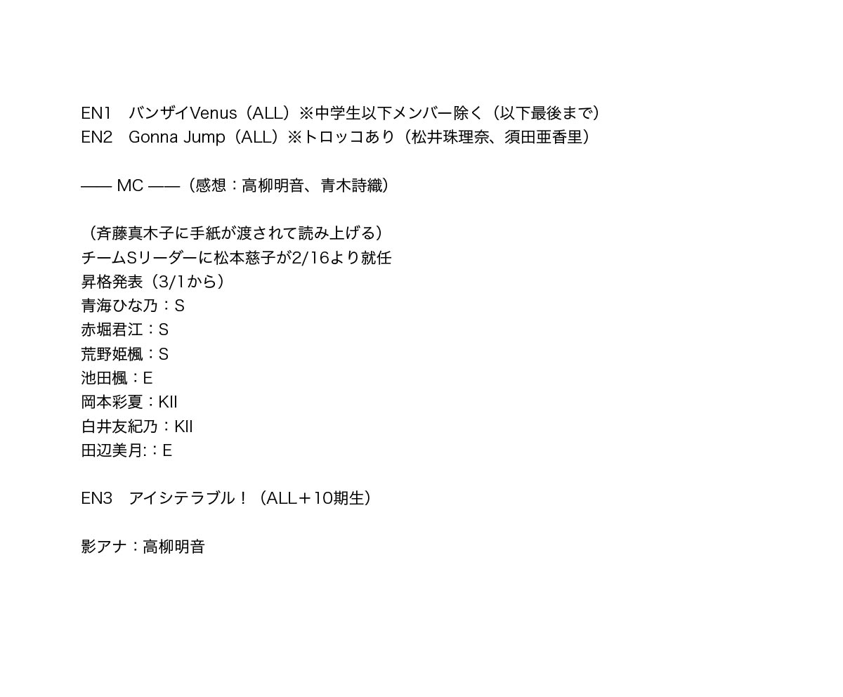 『SKE48 Valentine's Day Live 2020 〜 CHOCOLATE 〜 夜公演セットリスト』