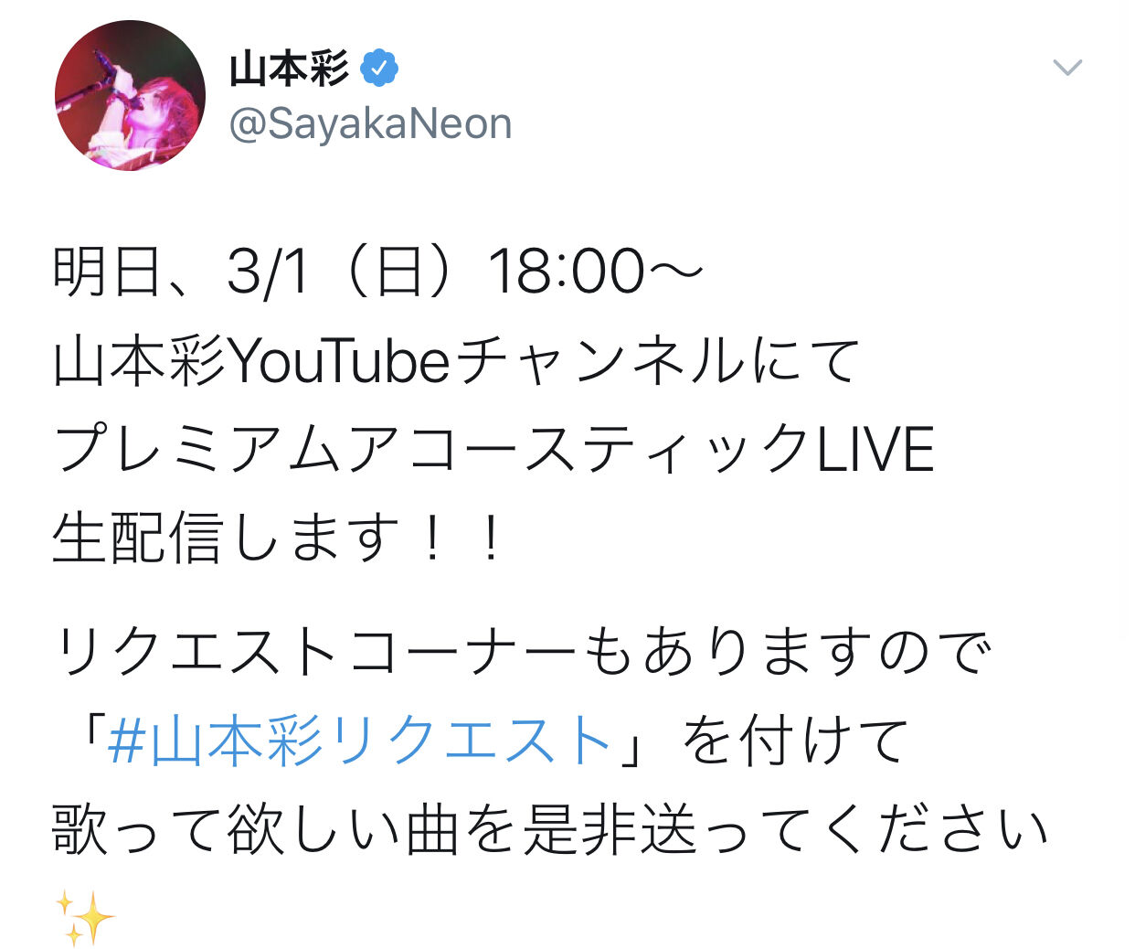 【速報】3月1日18時より山本彩プレミアムアコースティックライブ生配信キタ━━ヾ(゚∀゚)ノ━━!!